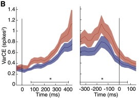 I gave a talk this week at a European Science Foundation workshop about noise in decision-making. It took place at Sant Fruitos des Bages in Catalonia, Spain. The workshop was notable in a number of respects. First, for someone like me who thinks a lot about neural variability, it was great to be among so many like-minded folks (I wore my VarCE t-shirt with pride). Second, the organizers of the meeting did an unusually good job bringing together some great women who work on this topic: Hendrikje Nienborg , Laura Busse, Sophie Deneve, Tania Pasternak, Catherine Tallon-Baudry, Satu Palva, Petra Ritter, Georgia Gregoiou, and a postdoc from Marlene Cohen‘s lab. One of the most interesting talks from my point of view was presented by Encarni Marcos from Paul Verschure’s lab at the UPF in Barcelona. She described work from a recent publication of hers in which they calculated a quantity called the Variance of the Conditional Expectation (also known as the VarCE). Mike Shadlen and I (along with some co-authors) defined this quantity in our 2011 paper about variance in parietal cortex. Encarni used the VarCE in the service of a different goal: she tested whether a signature of a known trial history effect might be evident in the VarCE. To this end, she calculated the VarCE of dorsal premotor neurons recorded during a countermanding task where subjects sometimes have to cancel a planned movement. Her main finding was that trials that were just after a “stop” trial were highly variable: some had a much higher-than-average firing rate, and some a much lower-than-average firing rate. Encarni’s dataset is particularly intriguing because the two conditions she compared had nearly identical firing rate means. By examining VarCE, she was able to uncover a neural mechanism that would have been invisible using traditional analyses.